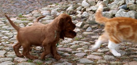los hinterher! der komische Kerl haut ab!